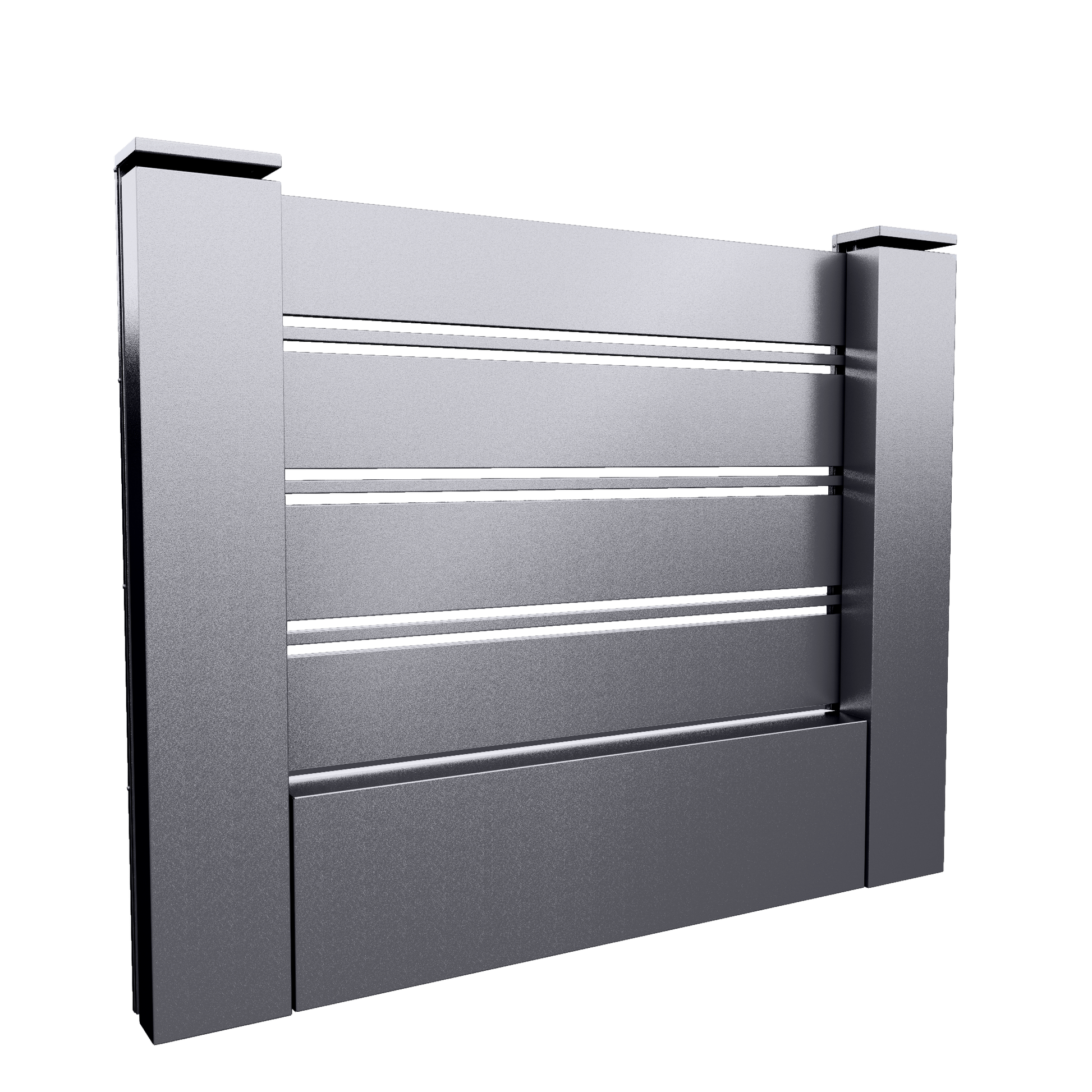 Gardurile tip Casette sunt formate din panouri metalice pline, montate în rame din oțel galvanizat, creând o structură rigidă, sigură și complet opacă.