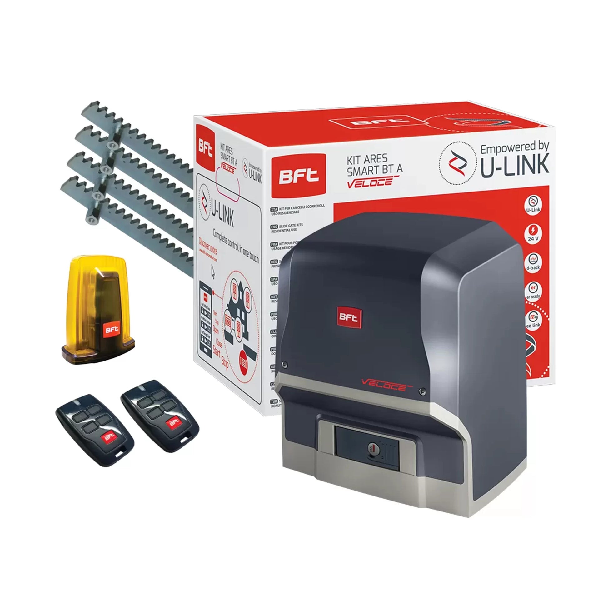 BFT ARES VELOCE este o automatizare de ultimă generație pentru porți culisante, concepută pentru viteză, siguranță și fiabilitate. Cu o viteză de deschidere superioară și tehnologie U-Link integrată, sistemul oferă control inteligent și performanță constantă chiar și în condiții de utilizare intensă.