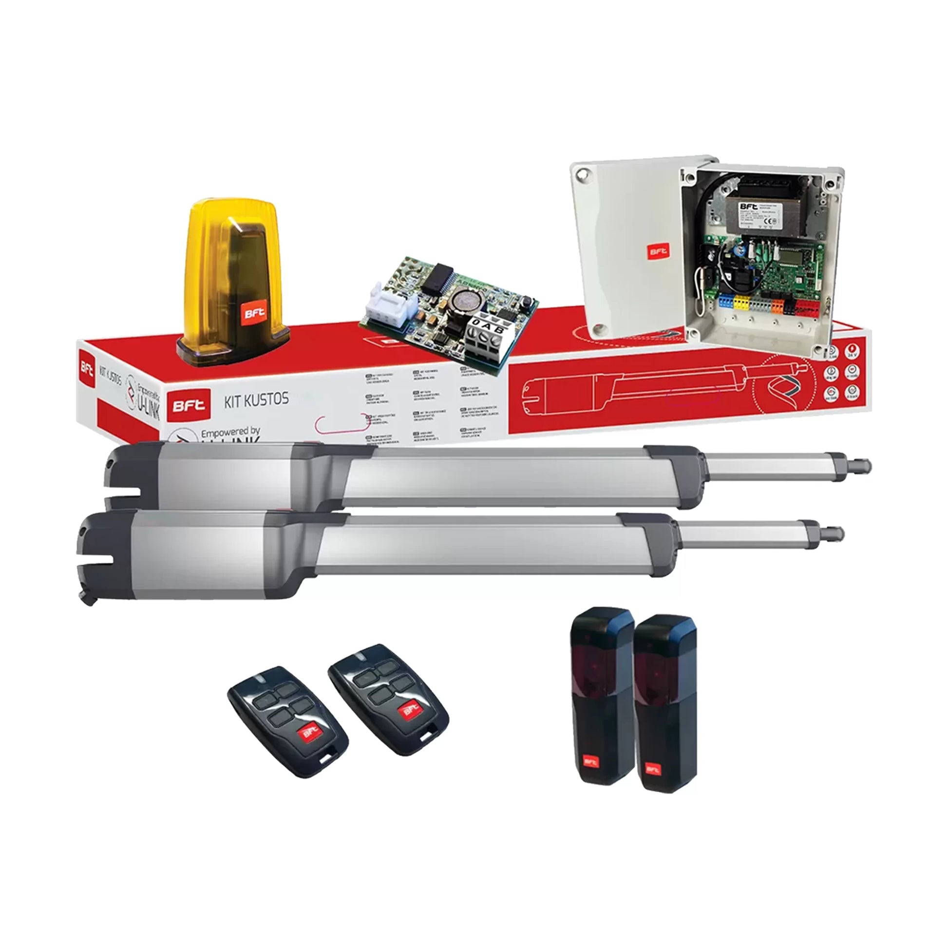 BFT KUSTOS este o automatizare cu braț telescopic pentru porți batante rezidențiale și semi-industriale, proiectată pentru putere, durabilitate și funcționare silențioasă. Sistemul oferă un control precis al mișcării și protecție completă împotriva obstacolelor, fiind compatibil cu tehnologiile smart BFT.