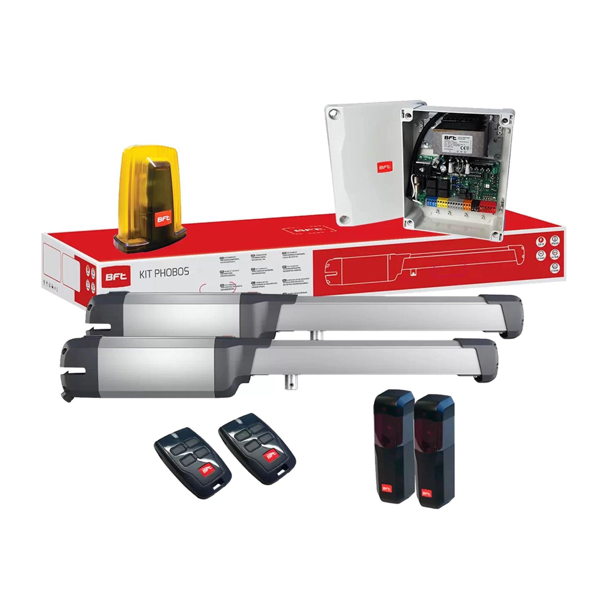 BFT PHOBOS este o automatizare cu braț telescopic pentru porți batante, ideală pentru uz rezidențial sau semi-intensiv. Sistemul oferă funcționare lină, control precis și siguranță ridicată, fiind compatibil cu toate modulele inteligente BFT pentru gestionarea de la distanță.